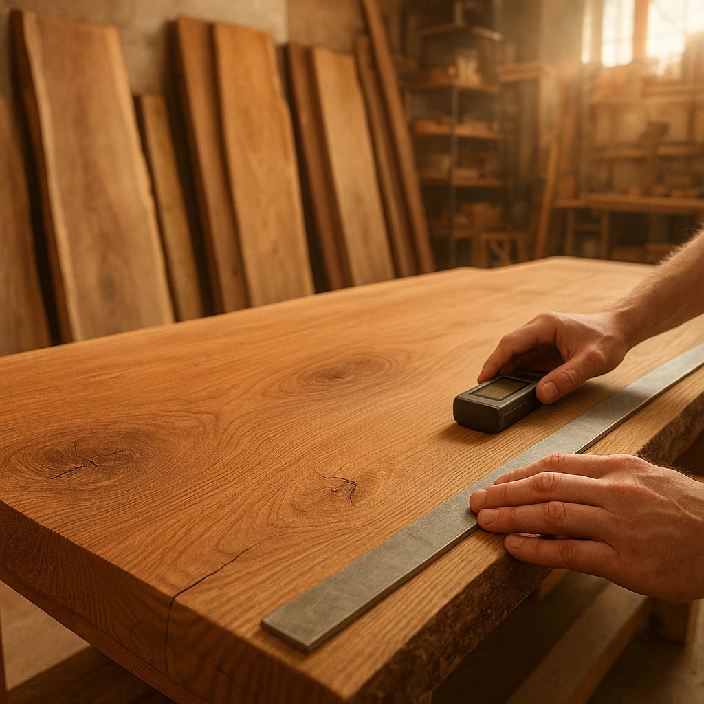 Выбирая слэб для изготовления столешницы, стола или другого предмета мебели, мало кто задумывается о таком важном параметре, как влажность древесины. А ведь именно от этого показателя напрямую зависит долговечность и внешний вид будущего изделия. Почему же так важно, чтобы влажность слэба находилась в пределах 8–12%?